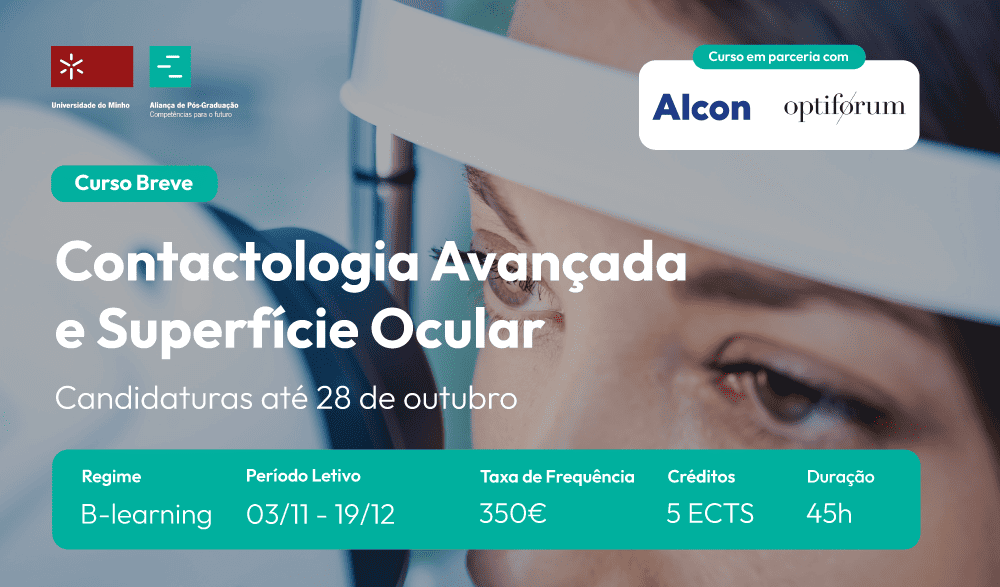 Este curso, lecionado em regime b-learning, tem como objetivo proporcionar um conhecimento alargado das caraterísticas oculares, desenhos de lentes de contacto especiais, técnicas de adaptação e tecnologias auxiliares de diagnóstico aos profissionais da saúde visual e especialistas interessados no desenvolvimento e desenho de próteses de contacto para aplicação na superfície ocular, nomeadamente: conhecer as condições clínicas que requerem a adaptação de lentes de contacto para uma melhor reabilitação visual; conhecer as lentes e soluções tecnológicas existentes e os seus procedimentos de adaptação; conhecer as ferramentas tecnológicas que permitem otimizar os processos de adaptação e acompanhamento da condição clínica do sujeito; aplicar as soluções existentes no contexto da Atenção Visual Primária ou em equipas multidisciplinares em hospitais, clínicas e consultórios.
